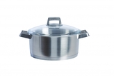 Mehrzer, Mělký nerezový katrol s poklicí MEHRZER 24 cm, výška 11 cm, tloušťka stěny 0,8 mm, tloušťka dna 9,4 mm, záruka 100 let