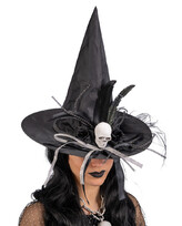 Carnival Toys Černý čarodějnický klobouk s lebkou a ozdobami