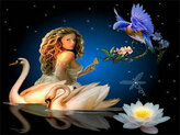 Diamentowa mozaika Kobieta, łabędzie i koliber 60814