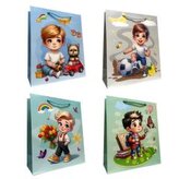 Torebka prezentowa dziecięca L brokat pojazdy mix