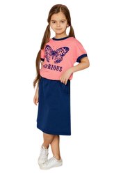 Dívčí šaty GLORIOUS s motýlem růžovomodré, velikost: 134