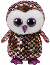 TY BOOS Flipables CHECKS - cekinowa różowoczarna sowa 24cm 36785