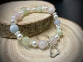 Náramek s přívěskem Srdíčko - Morganit & perla