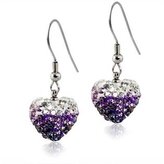 ESW1060 Ocelové náušnice srdíčka - čiré a fialkové krystaly - srdce