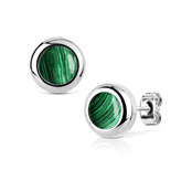 NB007-06 Ocelové náušnice s Malachitem 6mm