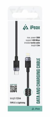 iPEAX textilní kabel USB-C / Lightning 1,5M, USB 2.0 černý