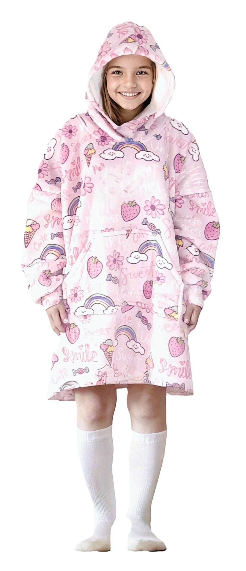Cozy Noxxiez CH341 Sladkosti potisk - hřejivá televizní mikinová deka s kapucí pro děti 7 - 12 let
