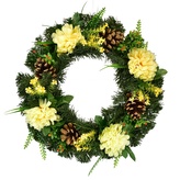 Věnec podzimní se světle žlutými chryzantémami Ø35 cm