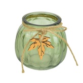 Svícen s lístkem skleněný zelený 7,5x8 cm