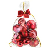Vánoční koule v sáčku, assort, červené, 14 ks