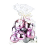 Vánoční koule v sáčku, assort, sv. růžové / stříbrné, 14 ks