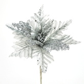 Poinsetie květ zápich třpytivá stříbrná Ø25 cm, 6 ks