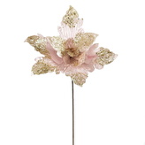 Poinsetie květ zápich textilní třpytivá zlatá Ø25 cm, 6 ks