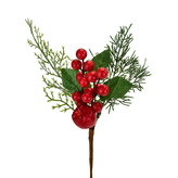 Keřík zelený s červenými bobulemi s jinovatkou 25 cm, set 4 ks