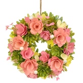 Jarní věnec z dřevěných kytiček růžový Ø30 cm