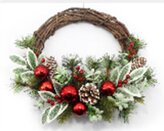 Proutěný věnec s červenými kouličkami a cestmínou Ø25 cm