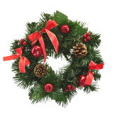 Věnec s červenými kvítky a šiškami Ø25 cm