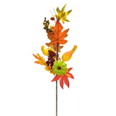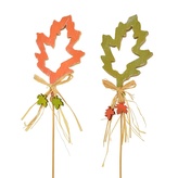 Dřevěný list s lýkovou mašlí zápich zelený a oranžový 30 cm, set 2 ks