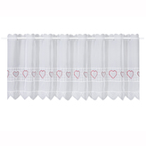 Vyšívaná krátká záclonka s motivem srdce - červená, 45 mm, 150 mm