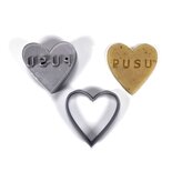 Valentýnské razítko s vykrajovátkem ve tvaru srdce s nápisem PUSU