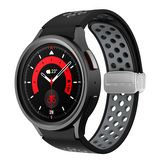 Perforovaný magnetický řemínek pro Samsung Watch 4/5/6,Černo-šedý se stříbrnou přezkou