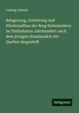Belagerung, Zerstörung und Wiederaufbau der Burg Hohenzollern im fünfzehnten Jahrhundert: nach dem jetzigen Standpunkte der Quel