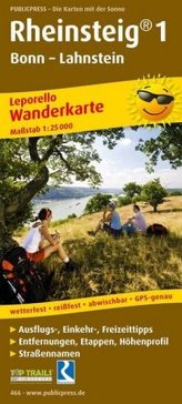 PublicPress Wanderkarte Rheinsteig 1, Bonn - Lahnstein, 21 Teilktn.