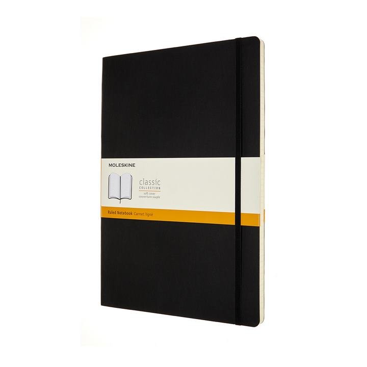 Linkovaný zápisník velikosti A4 v měkké vazbě. Obepíná ho pružná páska proti samovolnému otevírání. Každý zápisník je vybaven pořadačem poznámek, který je vyroben z tkaniny a kartonu, textilní záložkou a letákem s historií Moleskine. Papír s gramáží 70 g/m2 neobsahuje kyseliny.