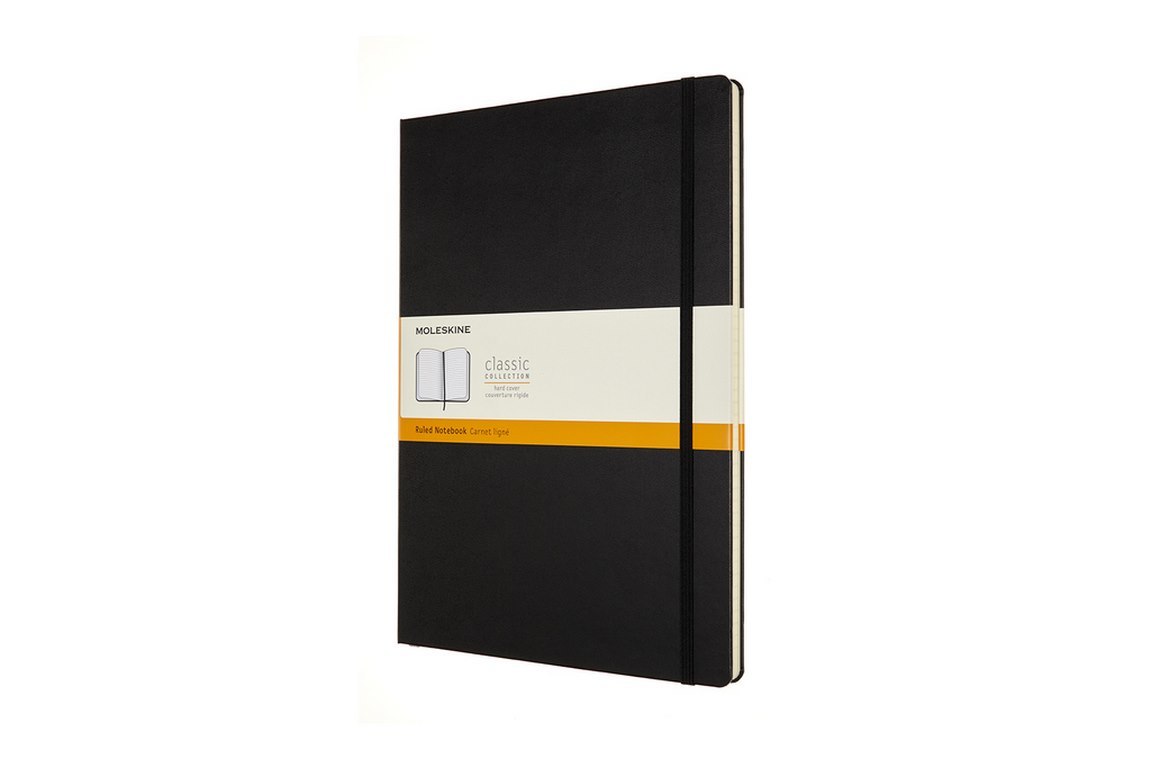 Linkovaný zápisník velikosti A4 v tvrdé vazbě. Obepíná ho pružná páska proti samovolnému otevírání. Každý zápisník je vybaven pořadačem poznámek, který je vyroben z tkaniny a kartonu, textilní záložkou a letákem s historií Moleskine. Papír s gramáží 70 g/m2 neobsahuje kyseliny. číst celé