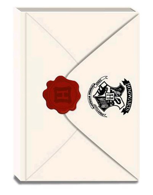 Zápisník v grafice kouzelnického světa v Bradavicích. Bílý zápisník ve tvaru dopisu s červenou pečetí uprostřed. Na přední straně je nápis Hogwarts (Bradavice) a také typický znak školy čar a kouzel. Celý zápisník se otevírá, jako pravý dopis a na zadní straně je napsana adresa Harryho Pottera.