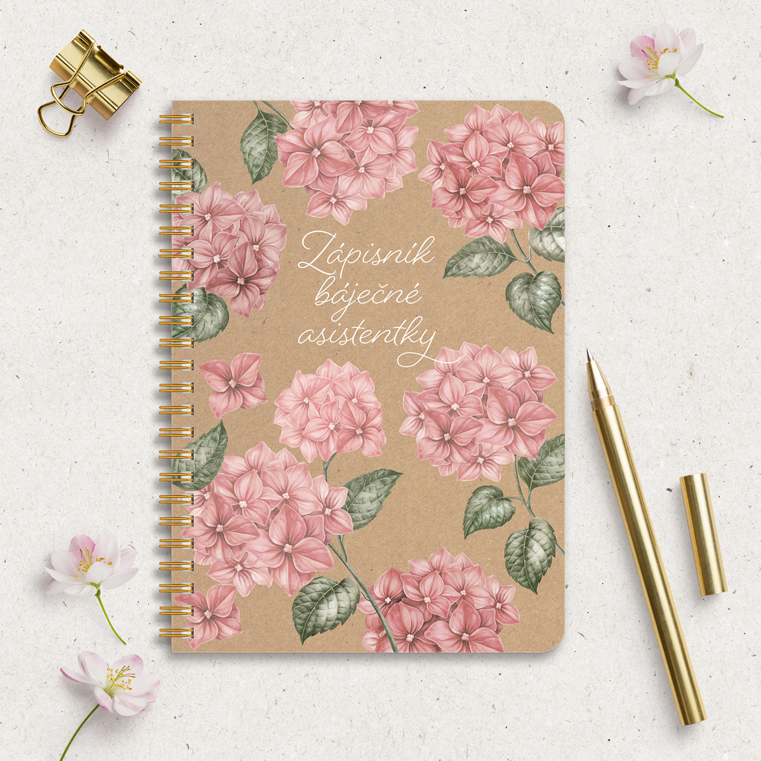 Skvěle vypadající zápisník, který je kvalitně potištěný motivem růžové hortenzie potěší i jako praktický dárek!