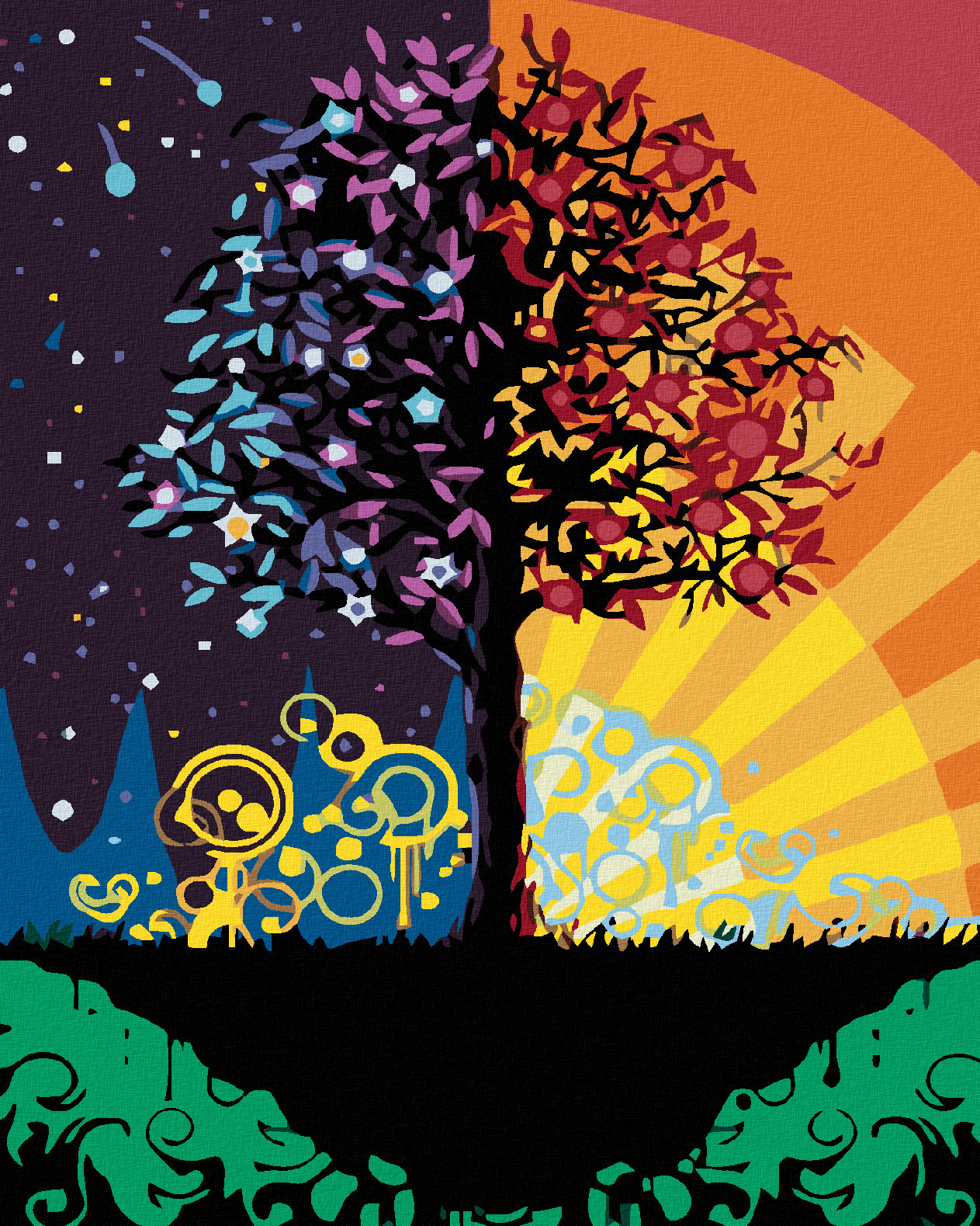 Malování podle čísel - BAREVNÝ STROM - 40x50 cm, bez rámu a bez vypnutí plátna