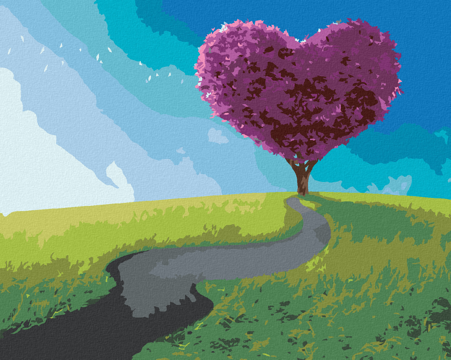 Malování podle čísel - FIALOVÝ STROM VE TVARU SRDCE - 40x50 cm, vypnuté plátno na rám