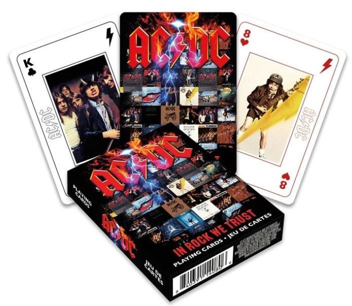 Hrací karty s motivem: In rock We trust, skupiny AC/DC. Krabička obsahuje 54 karet.