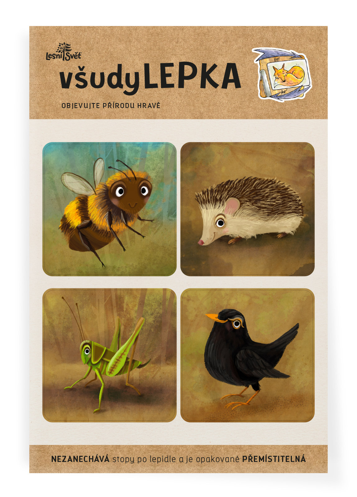 Vzor všudyLEPKY: čmelák, ježek, kobylka, kos
