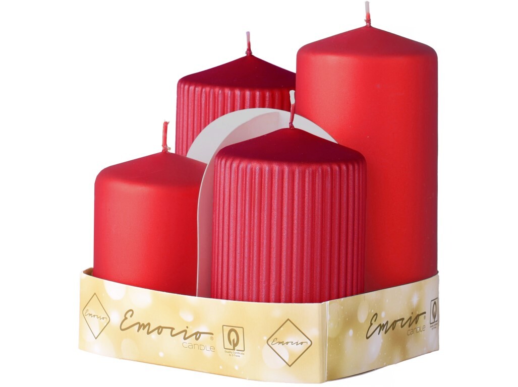 Emocio Sada 4ks Válec hladký + rýhovaný 65mm, Metal mat červená standard, svíčky