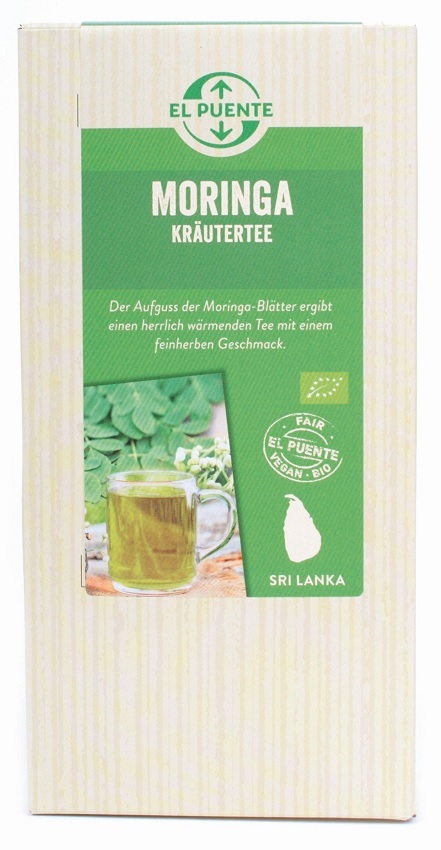 Tyto listy moringy sklízí drobní zemědělci zejména na jihozápadě ostrova Šrí Lanka. Úrodu pak dále zpracovává a exportuje rodinná Fair Trade společnost Biofoods, která je průkopníkem zpracování kokosových produktů a podporuje i další trvale udržitelné zemědělské projekty na ostrově.