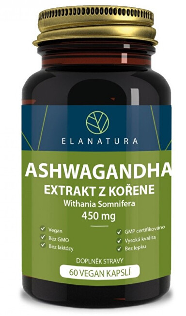 Ashwagandha od Elanatury obsahuje extrakt z kořene rostliny Withania somnifera v dávce 450 mg v jedné vegetarianské tobolce. Aswagandha byla po několik tisíciletí využívána v tradiční indické Ájurvédě.