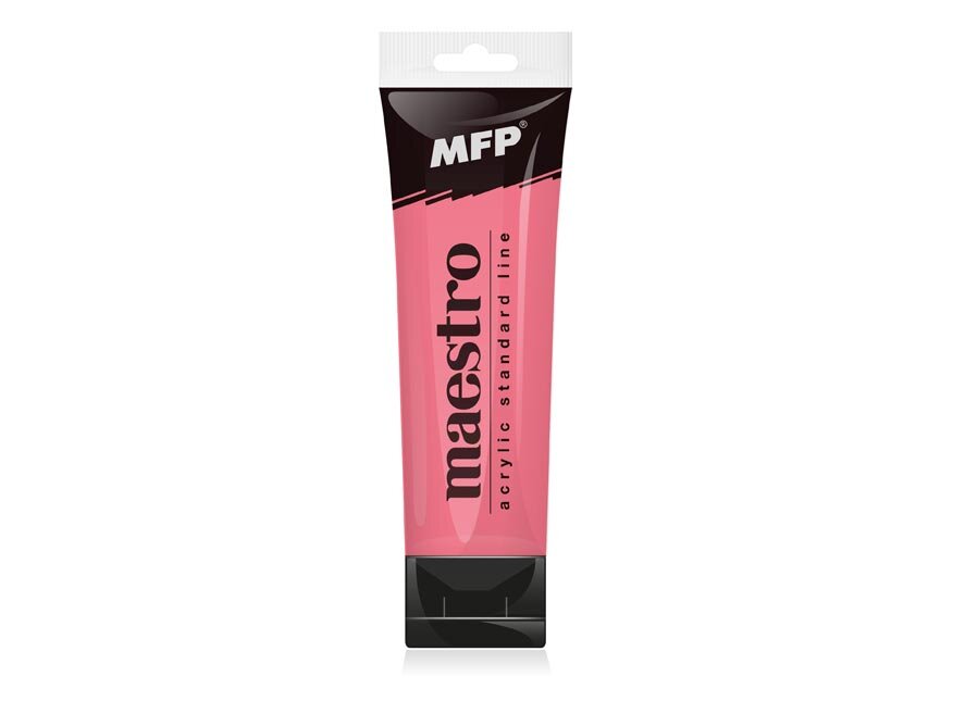 Akrylová barva MFP Maestro tea pink (čajověvě růžová) je vysoce kvalitní vodou ředitelná barva, která je po zaschnutí voděodolná. Díky sytosti, jemné konzistenci a skvělé krycí schopnosti je ideální pro různé povrchy, jako jsou plátno, papír, dřevo nebo kámen. Hodí se pro profesionály i hobby tvůrce. Barva je v praktické plastové tubě, která umožňuje snadné dávkování a bezpečné uzavření, aby se zabránilo vysychání. Pro delší životnost a zachování jasných barev doporučujeme použít akrylový lak, který malbu zafixuje a ochrání před vlhkostí, prachem a UV zářením.