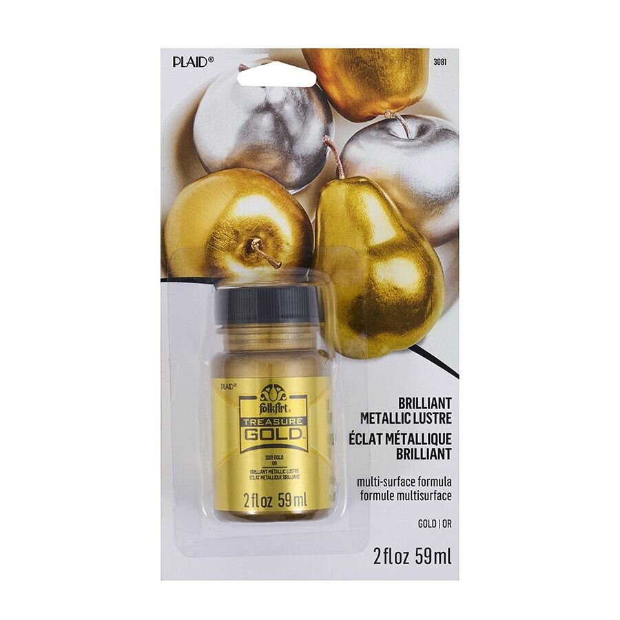FolkArt Treasure Gold je ideální volbou pro všechny tvůrce a dekoratéry, kteří chtějí dosáhnout ohromujícího metalického efektu. Tato akrylová barva nabízí intenzivní zlatý lesk, který vynikne na široké škále povrchů a dodá vašim výrobkům a dekoracím skutečnou hodnotu a eleganci.