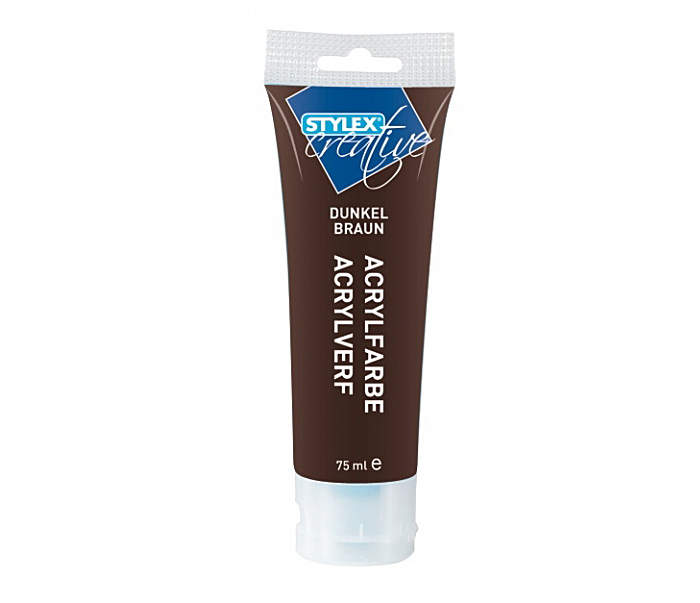 Vysoce kvalitní hustá akrylová barva v tubě. Barva s vysokou pigmentací, vhodná na nejrůznější použití - papír, plátno, dřevo, sklo, kov, kámen, keramika, textil apod. Barvy se dají spolu vzájemně míchat a tím získáte neomezenou škálu odstínů. Barva je hustá, má vynikající krycí schopnosti. Možno ji naředit vodou dle potřeby. Barva: tmavě hnědá