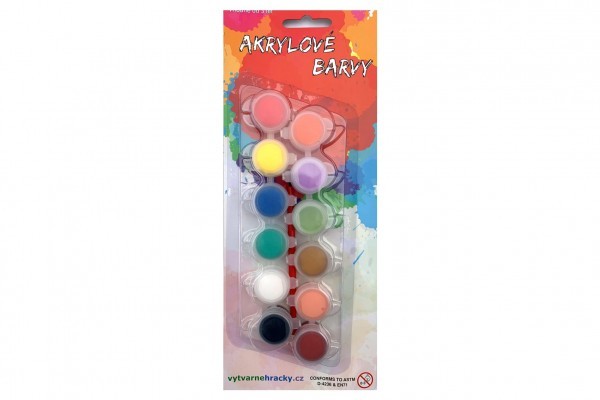 - Obsah sady: 12 kusů akrylových barev a jeden štětec