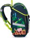Ergonomický tvar s anatomicky zpracovanými zády a širokými polstrovanými ramenními popruhy zajistí správné rozložení hmotnosti, což potvrzují i doporučení fyzioterapeutů. Hlavní komora je rozdělena rozřazovačem, který pomáhá udržet pořádek, a nechybí ani jmenovka a rozvrh hodin pro lepší přehlednost. Pevné, nepromokavé dno chrání obsah a stabilizuje batoh na podlaze. Přední kapsa je přímo stvořená pro svačinový box a boční kapsy na zip nabídnou další úložné prostory pro drobnosti.