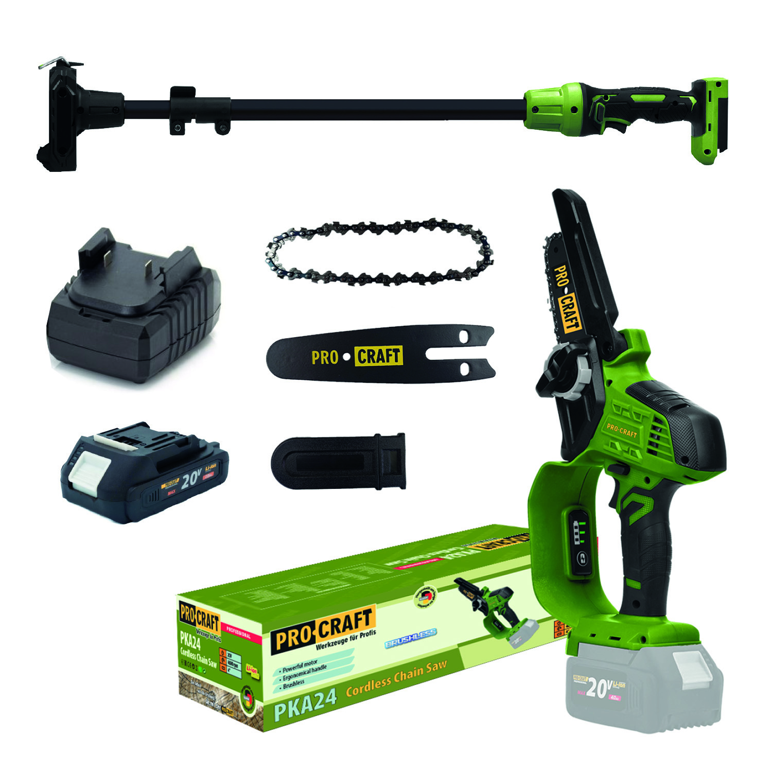 Aku řetězová pila PKA24 a prodlužovací nástavec sada s baterií 20V 2Ah a nabíječkou