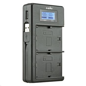 Inteligentní duální nabíječka Jupio JDC2010 s displejem může nabíjet až dvě baterie Sony NP-FH/FV-50/70/100 zároveň. Napájení probíhá přes USB vstup.