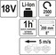 - Náhradní baterie 2 Ah (YT-82842), 3 Ah (YT-82843) a 4 Ah (YT-82844)