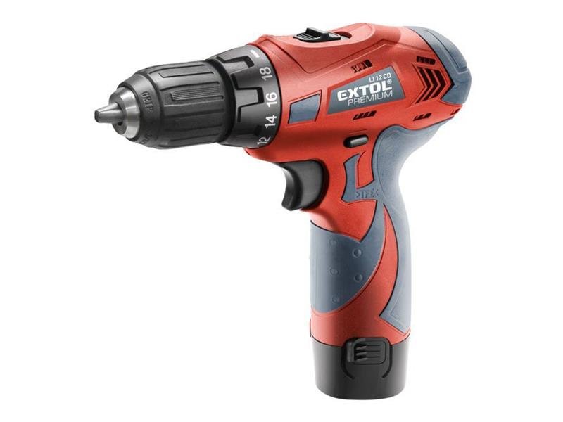 Vrtací šroubovák aku, 12V Li-ion, 1300mAh, EXTOL PREMIUM Lehký a výkonný 2-rychlostní vrtací šroubovák v ultra kompaktní velikosti je ideální pro středně těžké vrtání a šroubování do kovu a dřeva. Integrovaná LED svítilna usnadní práci v tmavých prostorách. 2-rychlostní převodovka umožňuje nastavit odpovídající otáčky pro konkrétní druh práce. 18 stupňů kroutícího momentu plus stupeň pro vrtání - ideální pro každé použití.
