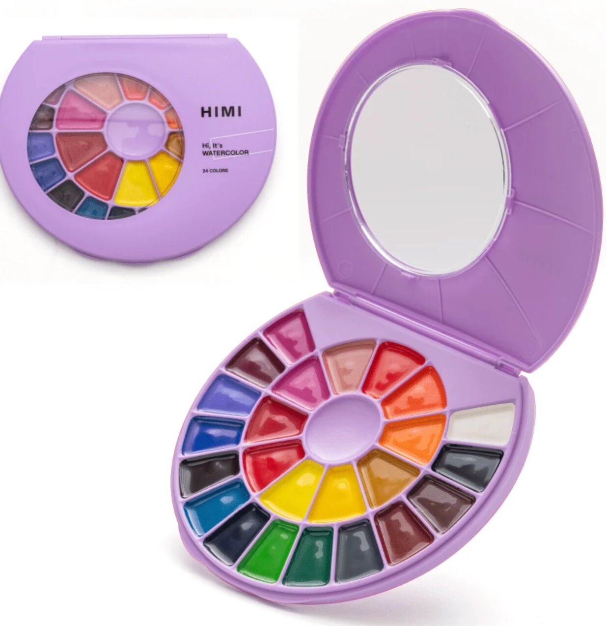HIMI akvarelové barvy - Semi-Moist - 24 Colours in Pans (Purple Edition)
