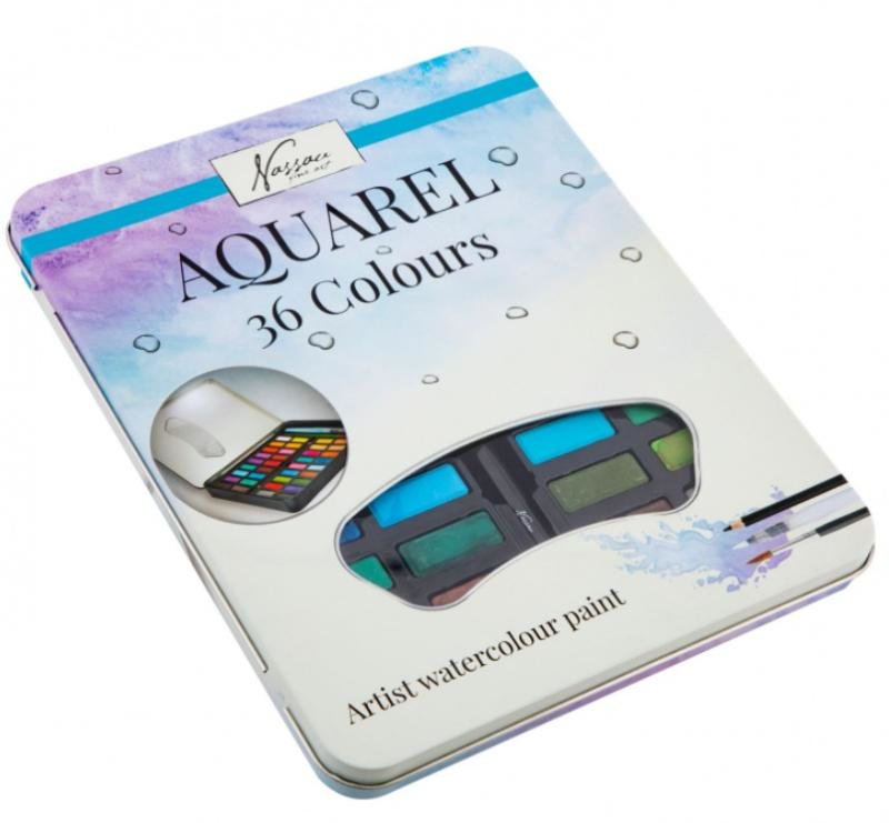 Akvarelové barvy Nassau v kovovém boxu 36 ks