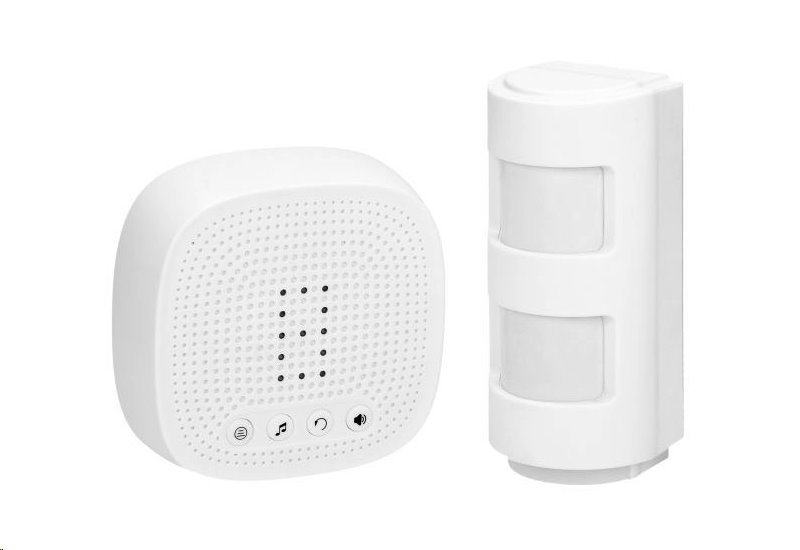Detektor pohybu pro monitorování vstupních dveří, chodeb, skladů, sklepů, vchodů, parkovišť atd., s upozorněním na přijímač.